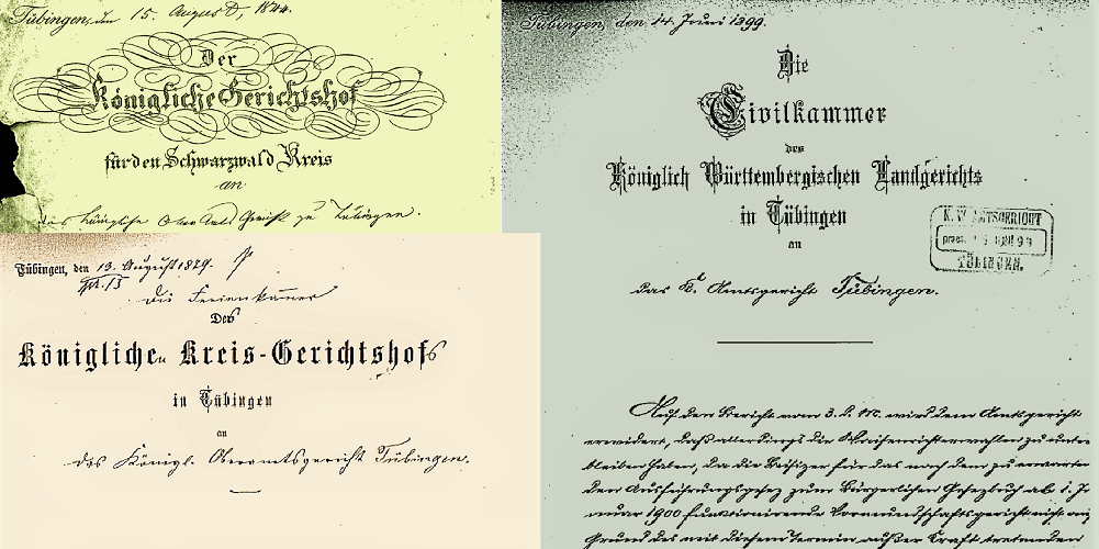 Über die Geschichte der Gerichtsbarkeit in Tübingen, die Entstehung des Landgerichts und die Geschichte des Tübinger Justizgebäudes finden Sie umfangreiche Informationen und Links auf der "Geschichtsseite".